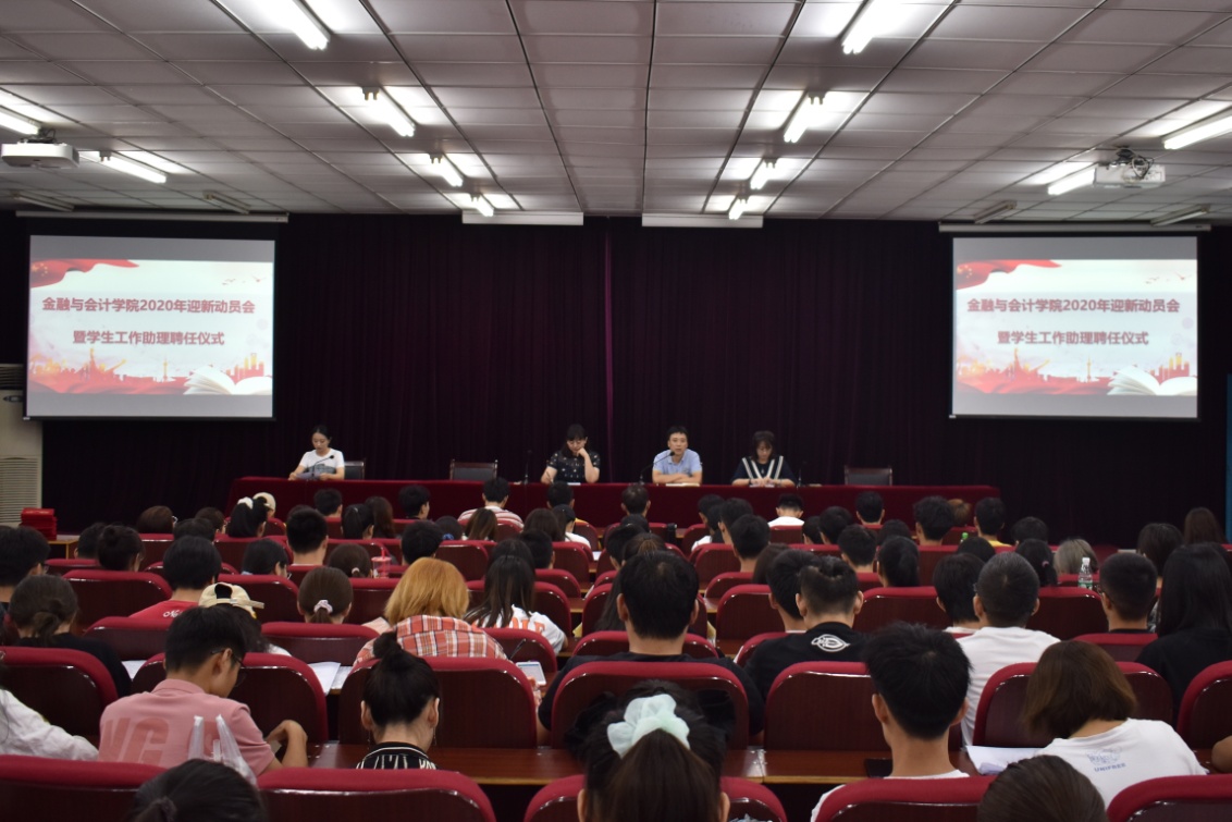 为了更好的开展2020级新生的迎新工作,2020年9月16日下午1点,世界杯体育官方网站在E109教室召开2020年迎新动员会暨学生工作助理聘任式。本次会议由团委学生会副主席夏子童主持,党委副书记汪晓伟、团委副书记邢珊珊、葛婉出席本次会议。