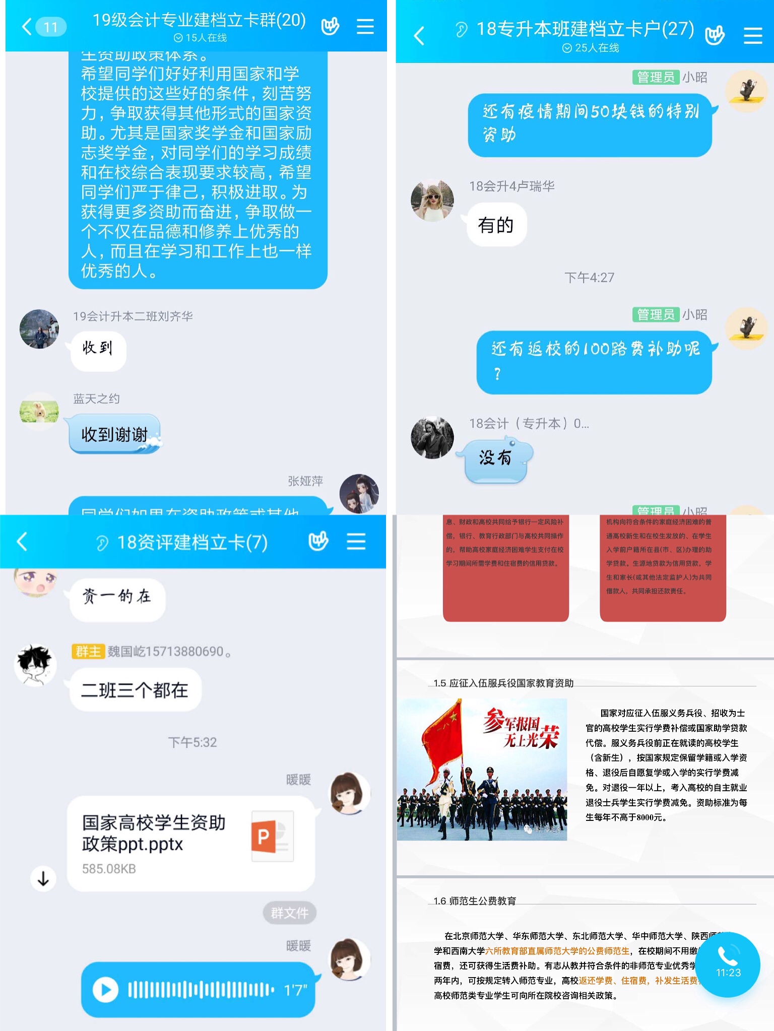根据当前新冠疫情防控的实际情况,以及全覆盖、无死角的走访要求,世界杯以辅导员老师为单位,对全院217名建档立卡学生通过电话、视频、QQ等形式进行线上走访宣传。此次活动共分三个部分,一是对国家及我校现行的资助政策的宣讲,使同学们更好的了解国家高校学生资助政策,避免因家庭经济困难而影响学业;二是告知学生家长在2019-2020学年学生的已受资助情况;最后是查看2019 年底《建档立卡贫困家庭学生温馨告知书》的发放和张贴情况。