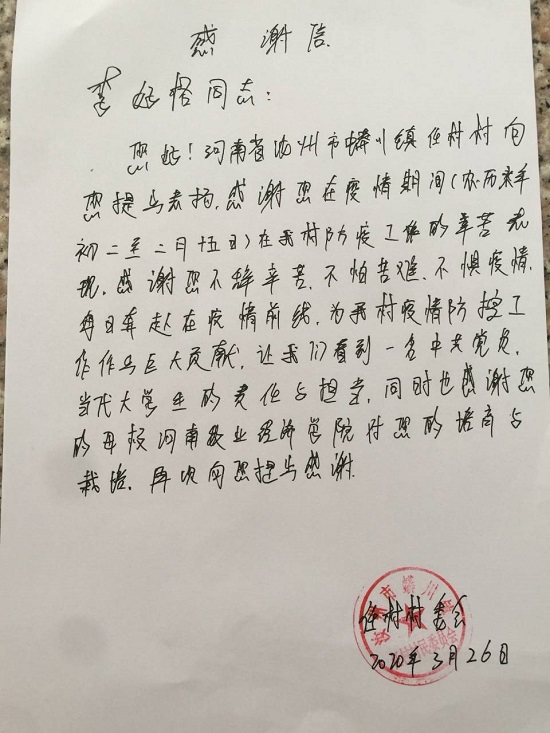 开展工作期间,“为啥不让我出去?”“我去走亲戚凭啥不让我进?”“我真有急事,你通融一下”,这是参加志愿工作以来听到最多的话。作为一名党员志愿者,她深知肩上责任重大,对此,她不能心软通融,而是要耐心讲解,宣传疫情防控知识。通过他们半个月的努力及宣传,村民群众的态度由最初的恶语相向,转变为现在的理解、肯定与支持。村民疫情防控意识也明显增强,截至目前,村里所有人员均处于安全状态。看到所有的村民们都响应号召,居家不出,一瞬间觉得自己工作中遇到的所有付出与困难都是值得的。