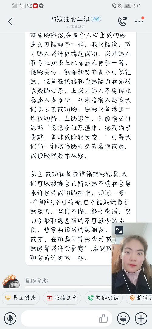 团课开展中,各个团支部围绕科学教育主题进行了广泛的讨论。有的团支部提出在当前新冠肺炎疫情影响下,应当引起同学们对成长成才的思考,不仅要有赤诚的爱国心,更要有爱国的能力。有的团支部通过直播方式,用身边的实例和近现代教育家的励志名言使同学们充分感受到了教育的意义。在各团员代表发言过程中,同学们积极参与、建言献策,为本次团课增添了一份活力。