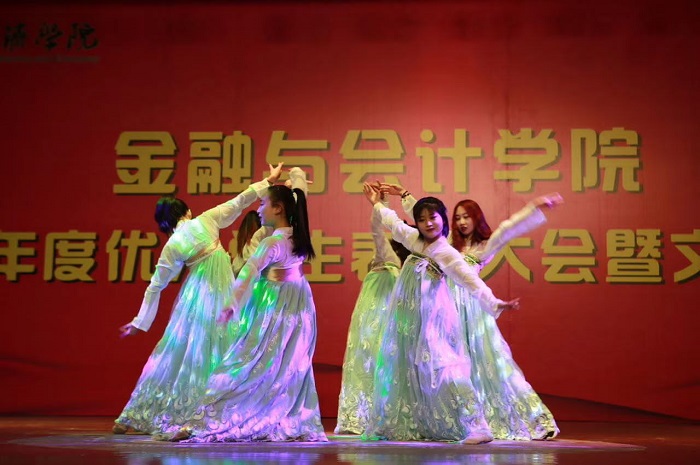 活动伊始,黄良杰院长致开幕词,首先他对获得表彰的优秀个人和先进集体表示祝贺,接着介绍了世界杯体育官方网站在师资力量、科研水平和管理能力等方面取得的成就,这对同学们的教育、培养、发展提供了有效的保障和极大的激励,激发了学生们的学习兴趣,为学生们树立了信心和指明了学习方向。接着,文艺汇演在具有青春活力的啦啦操《闪灵风暴》中拉开帷幕,节目三句半《歌颂祖国》表达了对祖国70年风雨征程中取得伟大成就的赞美之情。汇演节目形式丰富,表演精彩纷呈,让全场师生沉浸于中国传统文化艺术和大学生青春气息的熏陶感染之中。
