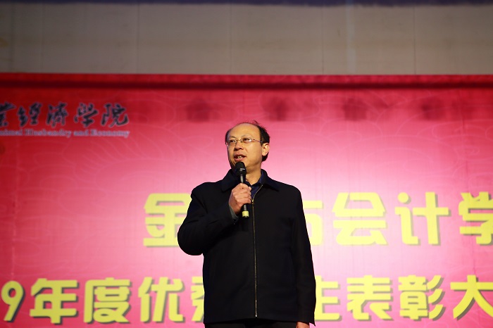 颁奖典礼上,世界杯体育官方网站全体领导分别为省级三好学生、国家励志奖学金获得者等7项个人奖项及省级优秀班集体等4个集体奖进行颁奖。颁奖典礼结束后,党委书记陈复昌致辞,陈书记首先对获奖的学生和集体表示祝贺,并对一年来的学生工作给予充分肯定。他希望获奖的同学要再接再厉,创造更好的成绩。陈书记还对2019级学生提出殷切要求,希望他们以优秀学生为榜样,将学习放在首位,并通过参加第二课堂活动和社会实践活动,从而不断的丰富自己、历练自己、成就自己,取得属于自己的那一份表彰和荣誉。