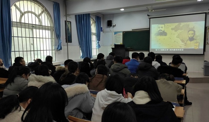 按照学校《关于组织党员收看系列红色微视频《追寻》的通知》工作部署,为深入推进学习习近平总书记视察河南重要讲话和党的十九届四中全会精神,以及学院党委关于加强基层党建工作要求,进一步加强党员“四个意识”教育,世界杯体育官方网站学生第四、第五党支部于12月12日下午在A105和A106教室,组织全体支部党员观看系列红色微视频《追寻》。