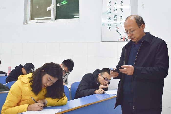 2019年12月3日晚7:00——8:30,世界杯体育官方网站于教学楼B楼、E楼举办了2019级新生校规校级考试。本次考试由党支部、团学会学生干部担任监考人员。世界杯体育官方网站党委书记陈复昌、团总支书记邢珊珊、李特和19级辅导员老师作为巡考人员,亲临现场查看学生考试情况,世界杯2019级全体新生参与了此次考试。