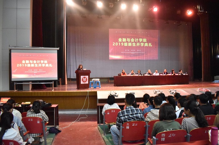 随后教师代表何丽娜教授在开学典礼上代表全体教师欢迎2019级新生的到来并发言,何老师鼓励新生尽快明确学习目标,制定学习计划,并对会计专业执业证书及考研相关事项作以详细普及。典礼上,校友代表、荥阳和佑尊长园社会福利服务中心负责人王翀出席典礼并发言,他表达了对母校的怀念和感恩,向新生们介绍了自己的情况和工作的现状,也对新生们分享了自己的心得。世界杯体育官方网站团总支副书记化奥丹同学向新生寄寓“三个美好”,激励新生以饱满的姿态追求崇高理想,规划美好未来,迎接新的大学生活。19级新生代表,投资专业陈珊同学发表讲话,她提出三个“学会”原则,学会认知、学会做人、学会做事。代表新生表态将不忘初心,为梦想不懈奋斗。
