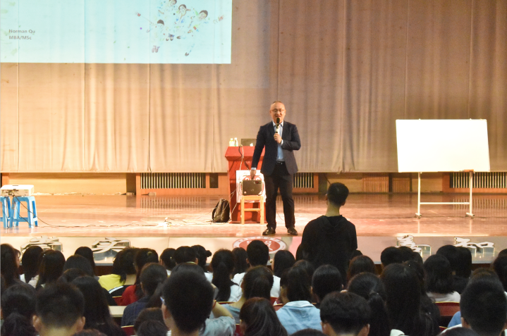 曲老师先是给现场学生提问,以交流互动的形式激发学生兴趣,带动现场氛围。他通过自身经历为同学们讲述了财经类职业发展道路光明的前景,也谈到职场路上的难点。随后,他通过分析财经类职业发展的机会与该类大学生毕业后的去向,来说明金融与会计专业工作机会的多样性,并以数据的形式分析了考研、出国、就业、创业的学生比例,解答了相关问题;他还讲述了大学生自主创业的具体案例,介绍了应届生出国留学后的发展规划,以及当前毕业生的就业形势存在一定的严峻性,并鼓励同学们要敢于坚持自己选择的道路。此外,曲悲岩老师还介绍了四大会计师事务所当前的员工规模、薪资待遇以及“四大”清晰的职业发展路径。然后,曲老师为世界杯学生梳理了一些可选的职业方向,例如会计师事务所、各行业企业、银行、保险公司、证券公司的投资银行部门等,也给学生们介绍了企业中的不同职位和职能,如CFO(财务总监)、企业会计、证券分析师、审计师的工作特点,并且列举了大学生应具备的能力,例如保持较高的学分绩点、加强英语的应用能力、考取相应证书(如ACCA,注册会计师、中级会计师)等。讲座最后,曲老师给予世界杯新生几点建议:要注重培养自己的人际关系,加强对于金融和会计知识的学习,做一些研究等。