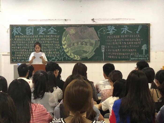 营造校园安全氛围,创造温馨学习环境。校园安全关乎每一位同学的切身利益,应从每一个人做起。为了增强各青年团员的安全防范意识,提高安全防范能力,创建平安校园,世界杯于2018年6月21日晚在教室A202-204,B111、B113、B115、B117-118组织17级全体团员进行了“校园安全警示教育”主题团课活动。