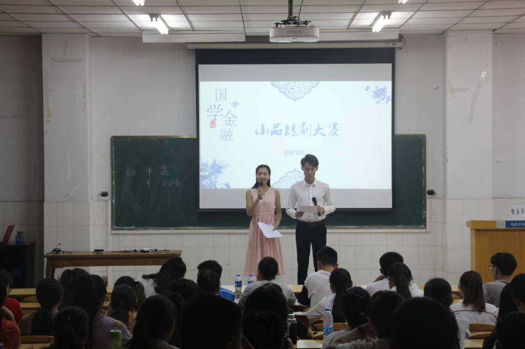 为扩大“国学·金融”活动的影响力,激发同学们学习国学经典和金融知识的热情,丰富大学生的校园生活,活跃校园气氛,给学生提供一个展现自我、挑战自我的舞台,金融学院于6月1日在教学楼w109举行了“国学·金融”系列活动—小品短剧大赛。
