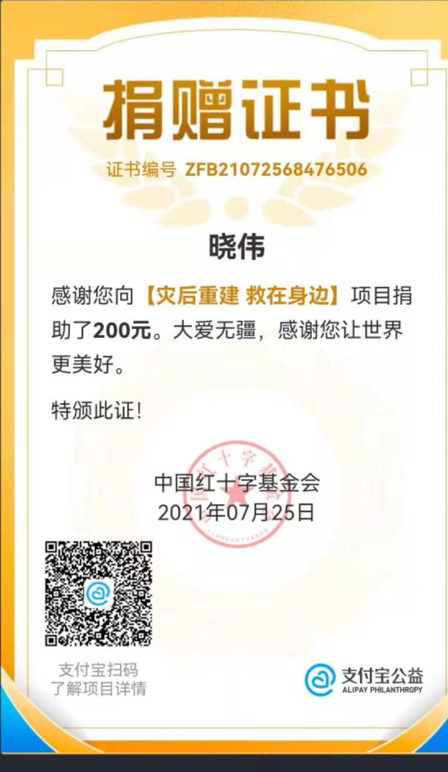这次救灾支援让他感受到了全国各地人民抗洪救灾、支援灾区的凝聚力量。在团委的号召下青年团员所迸发出来的活力、干劲,伟大的人民力量,党的领导力量都让他更加坚定了自己的选择,为抗洪抢险积极贡献自己的力量。