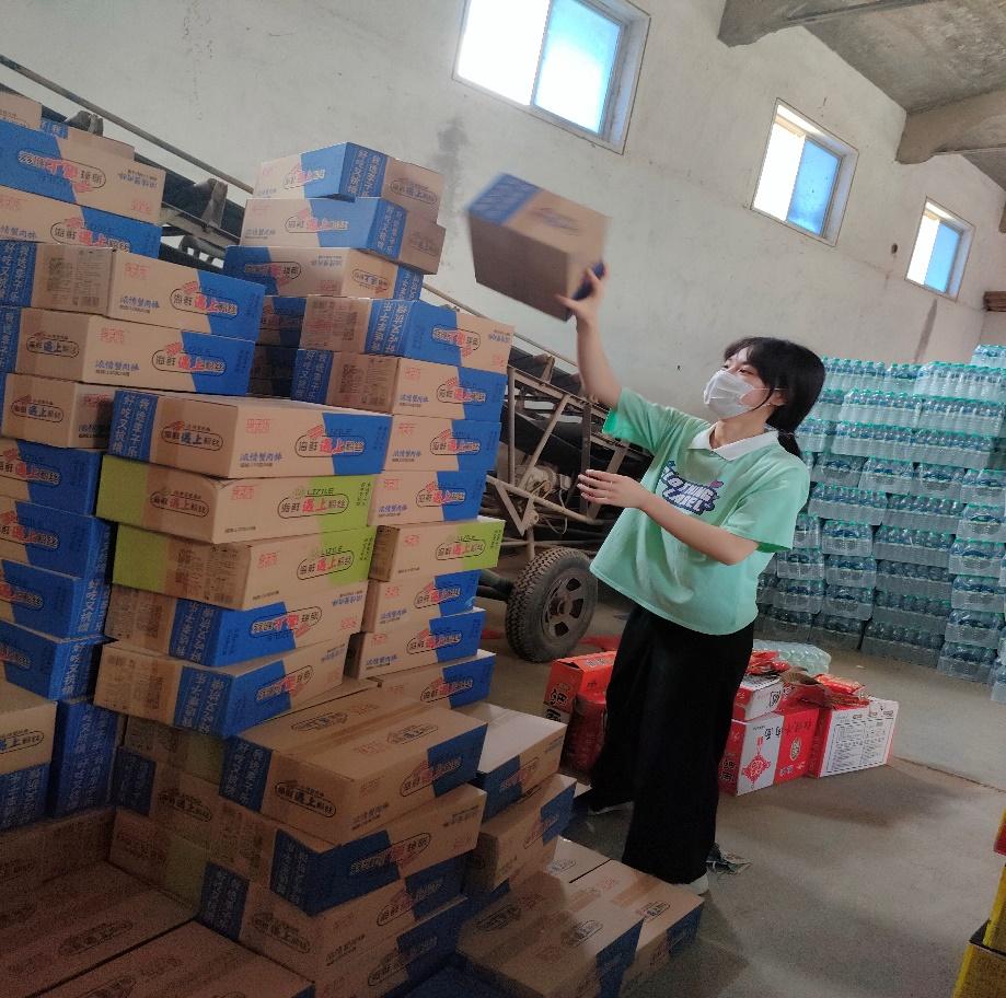 河南遭遇百年不遇的暴雨袭击,她目睹了郑州地面上的积水不断暴涨,眨眼间就成了湍急的洪水,车辆、公共设施被大水无情的淹没或者冲走,人民的生命安全受到了严重的威胁。作为一名大学生,为配合做好全省的防汛救灾维护社会稳定工作,守护美丽家园,她加入到抗洪救灾的志愿者队伍中,帮助装卸来自全国各省捐赠的救援物资,为转移到安置点和仍在受困的亲人们做一些力所能及的事情。