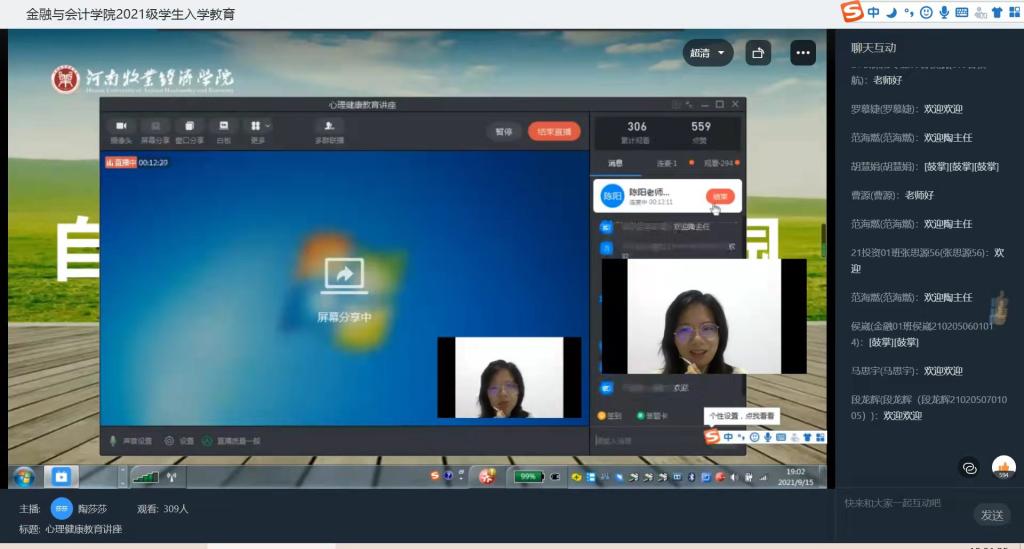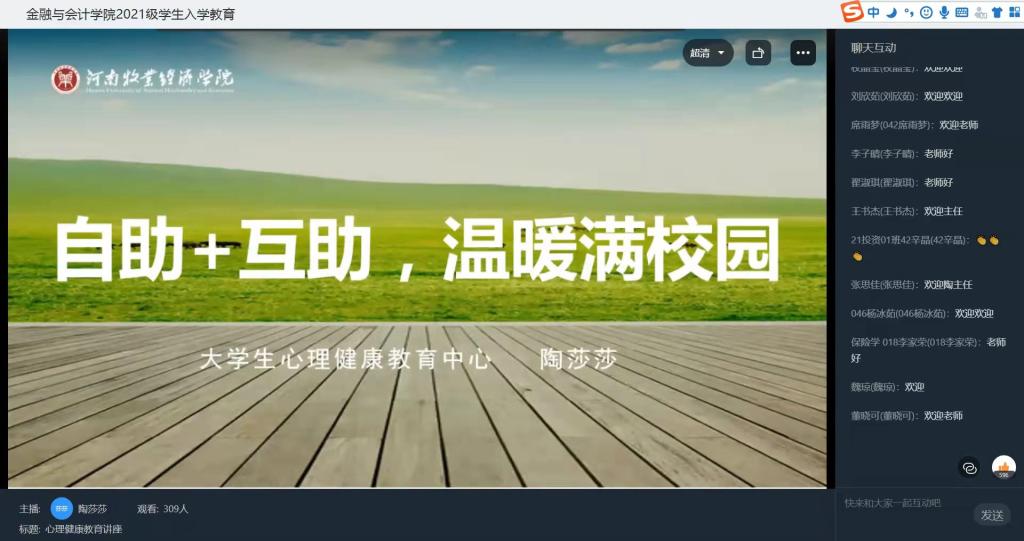 为促进我院心理健康教育建设,帮助新生更好地适应大学生活,树立更健康积极地心态,世界杯体育官方网站于9月15日晚19:00在线上开展新生入学教育“寻找心灵的龙猫”心理健康项目之专题讲座。本次讲座由大学生心理健康教育中心副主任陶莎莎主讲、陈阳老师主持,全体2021级新生参加。