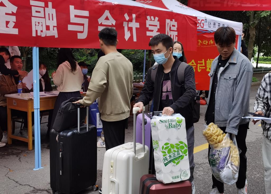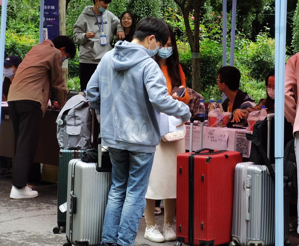 校园门口立着熟悉的帐篷,扫码、测温、核码、确认,为返校师生筑起一道坚实的健康防线。师生志愿者们坚守在报到点,帮助同学们迅速完成各项返校流程。各位指导老师维持现场秩序、监督实时进度,全体志愿者积极配合,为开学返校工作的顺利进行保驾护航。志愿者们一直在忙碌着,帮助归学学子来回搬运行李。他们的热心帮助让原本奔波在返校途中的同学得以片刻的轻松,感受到了校园的温馨,也让整体的返校工作更加有序、和谐。