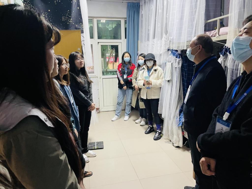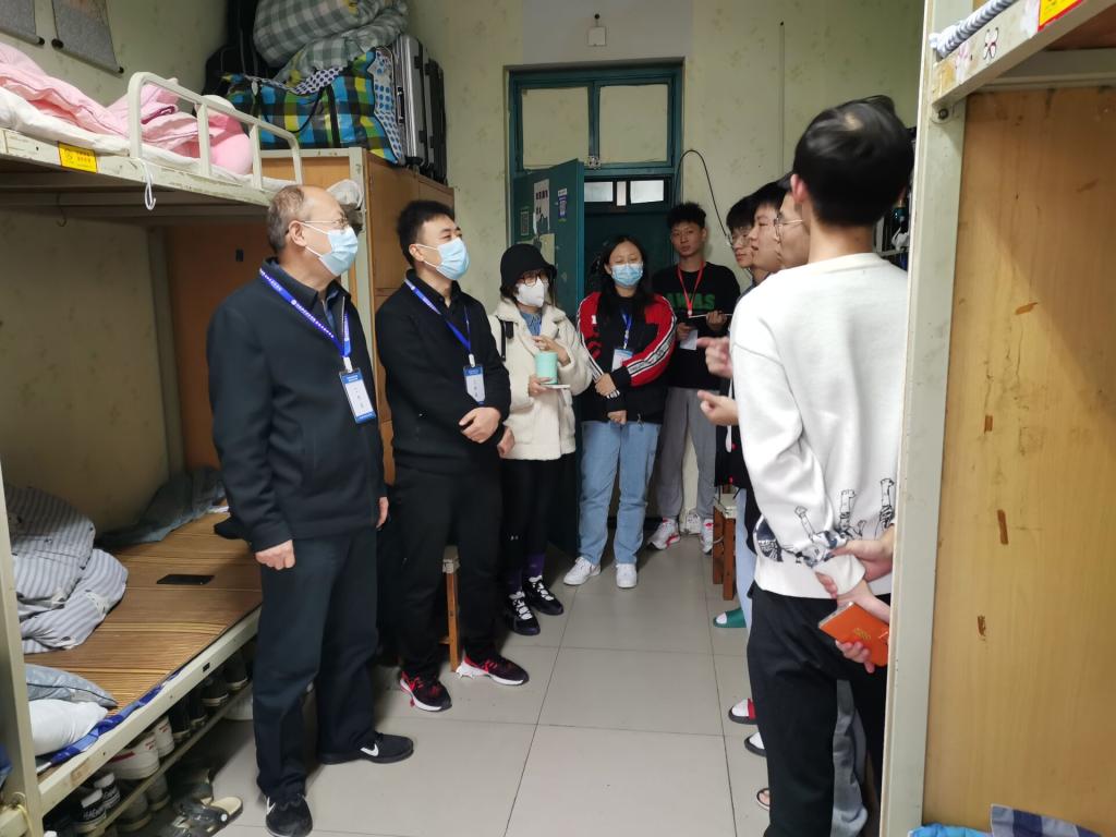世界杯体育官方网站党委书记陈复昌、党委副书记汪晓伟,团委副书记邢珊珊、葛婉,辅导员李甜老师于下午16点深入学生宿舍深入到学生宿舍了解返校情况,给予关怀,叮嘱学生们要做好宿舍卫生,晒洗被褥,开窗通风,勤洗手,落实学校各项防疫要求,严格遵守学校规章制度,为学习打下良好的基础,取得更大的进步。