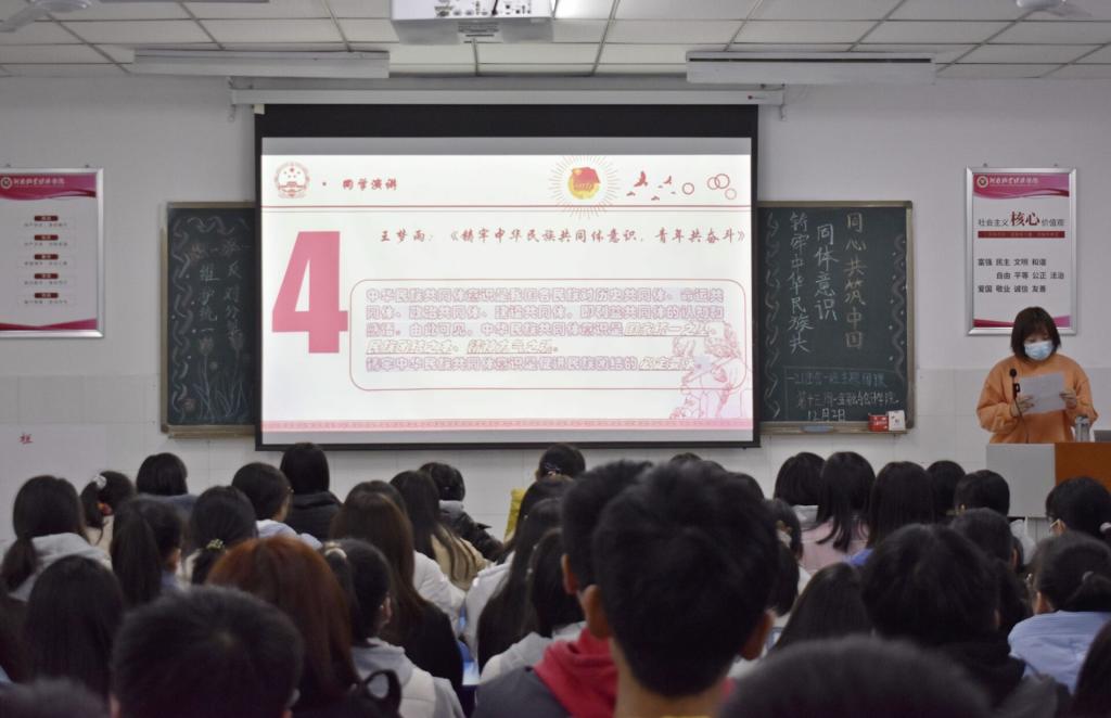 伴随着嘹亮的团歌声,各团支部组织的团课相继开展。在本次团课上,各班团支部通过演讲和播放视频等方式学习掌握党和国家民族理论政策法规以及民族分裂的危害,引导青年团员正确理解社会主义民族关系,增强“五个认同”,坚决维护统一、反对分裂,青年团员也都积极分享自己的认知看法。作为青年学子,应树立起维护国家统一和民族团结的意识,自觉拥护党和国家的民族政策,以实际行动维护民族团结,促进各民族共同繁荣。