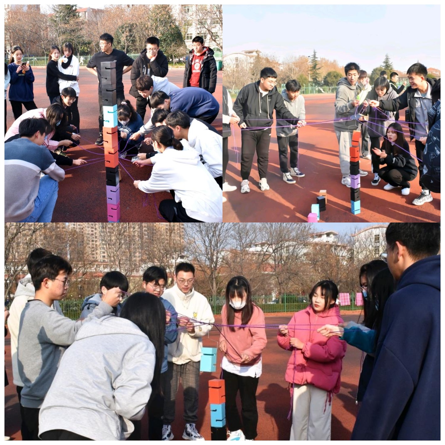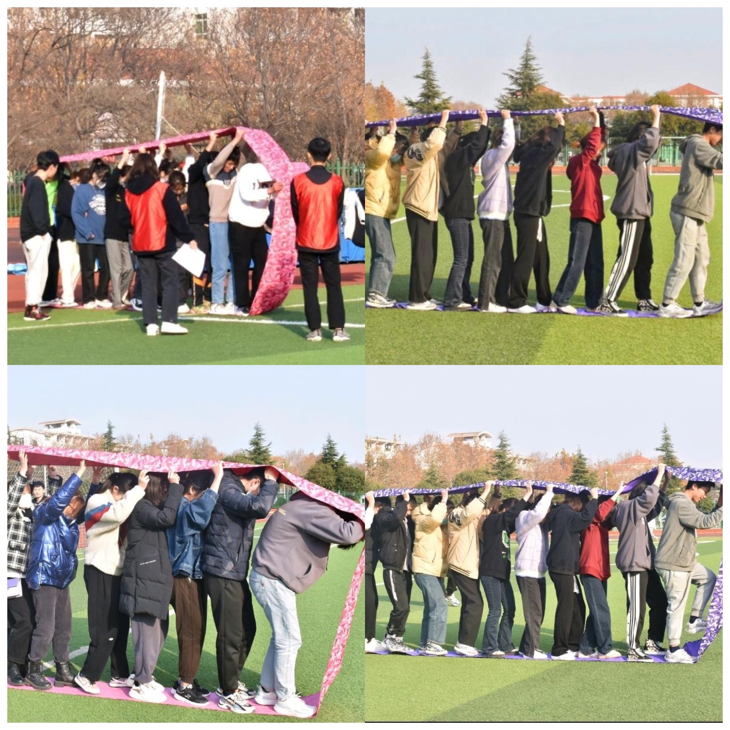 本次活动开展了一系列有趣且意义丰富的项目,其中包括奋勇拼搏(毛毛虫竞速)、车轮滚滚、蒙眼互打、合力搭建等。在活动中,七个班级各自分为七个小组,在各领队的带领下有序参与活动。比赛过程中,参赛队员们努力拼搏,全力以赴,既是趣味运动又是激烈竞赛,成员间齐心合力,密切配合,既赛出风采又凝聚起深厚情谊,所有同学都以饱满的热情和昂扬的斗志出色的完成了本次活动。
