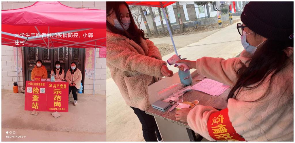 赵婧同学的家乡在河南浚县,在保障自身安全和健康的前提下,她帮助村委会宣传疫情防控知识,张贴宣传标语等。并且在志愿点值班,负责外来返乡人员的登记工作,并劝导村民不要随意聚集,带好口罩,日常做好个人防护。通过这些志愿者服务,赵婧同学真切体会到了抗疫工作人员的辛苦,我们一定能顺利度过寒冬,迎来美好的春天。