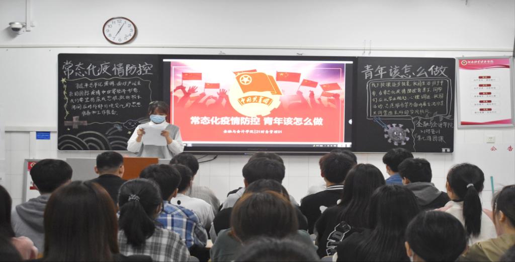 伴随着嘹亮的团歌声,各团支部组织的团课也随之展开。青年团员们热情高歌团歌,注意力高度集中。各班团支部通过观看习近平总书记对疫情常态化管控的讲话,从学业规划、心理调适、校园活动、志愿服务、时间管理等方面开展分享交流,充分彰显了浓浓的爱国情怀以及关注国之大事的赤心。团课过程中,学生代表积极发言,从多个角度,多层方面诠释本次团课主题,并表明要积极参与防疫志愿活动,将手中行动与心中情怀统一,做“有敢担责”青年,面对疫情不松懈,勤学笃行重实践。