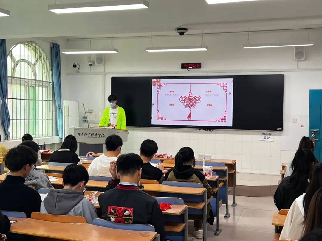 活动现场,大家在绘心工艺社团干事的介绍下认真学习中国结的历史和知识。一根根红色丝绳在指尖穿梭,一个个带着浓浓中国味的中国结诞生了。看着自己亲手编织而成的中国结,同学们感受到了传统文化带给大家的快乐。