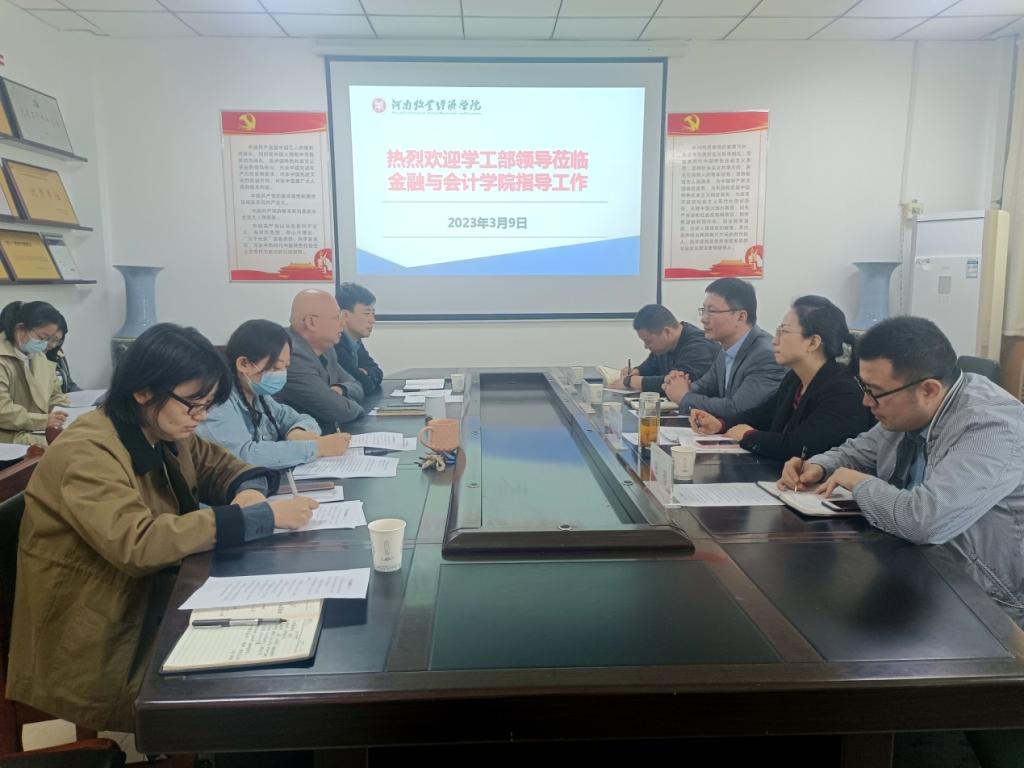 3月9日上午,校党委学生工作部部长郝景昊,副部长张聪慧、王宏魁、张彤一行莅临世界杯调研指导工作,并在学院514会议室召开座谈会。院党委书记陈复昌,党委副书记汪晓伟,团委书记(学工办主任)葛婉、团委副书记(学工办副主任)顾自卫、刘慧莹及全体辅导员参加了本次座谈会。