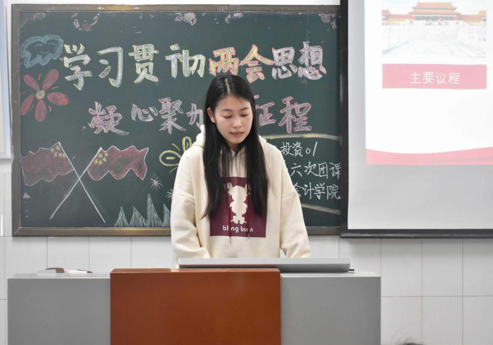 伴随着嘹亮的团歌声,各团支部组织的团课相继开展。在本次团课中,各团支部积极引导同学们关注“两会”议程、学习“两会”精神,让同学们围绕“学习贯彻两会精神,凝心聚力新征程”主题表达自己的看法和感想。本次团课中也让同学们感悟两会精神,积极追随中国共产党的脚步,紧紧向中国特色社会主义思想核心靠近,为实现中国共产党的伟大胜利而共同努力,展现出新中国的时代风貌。
