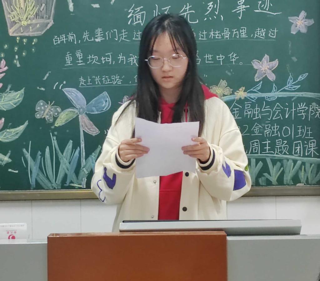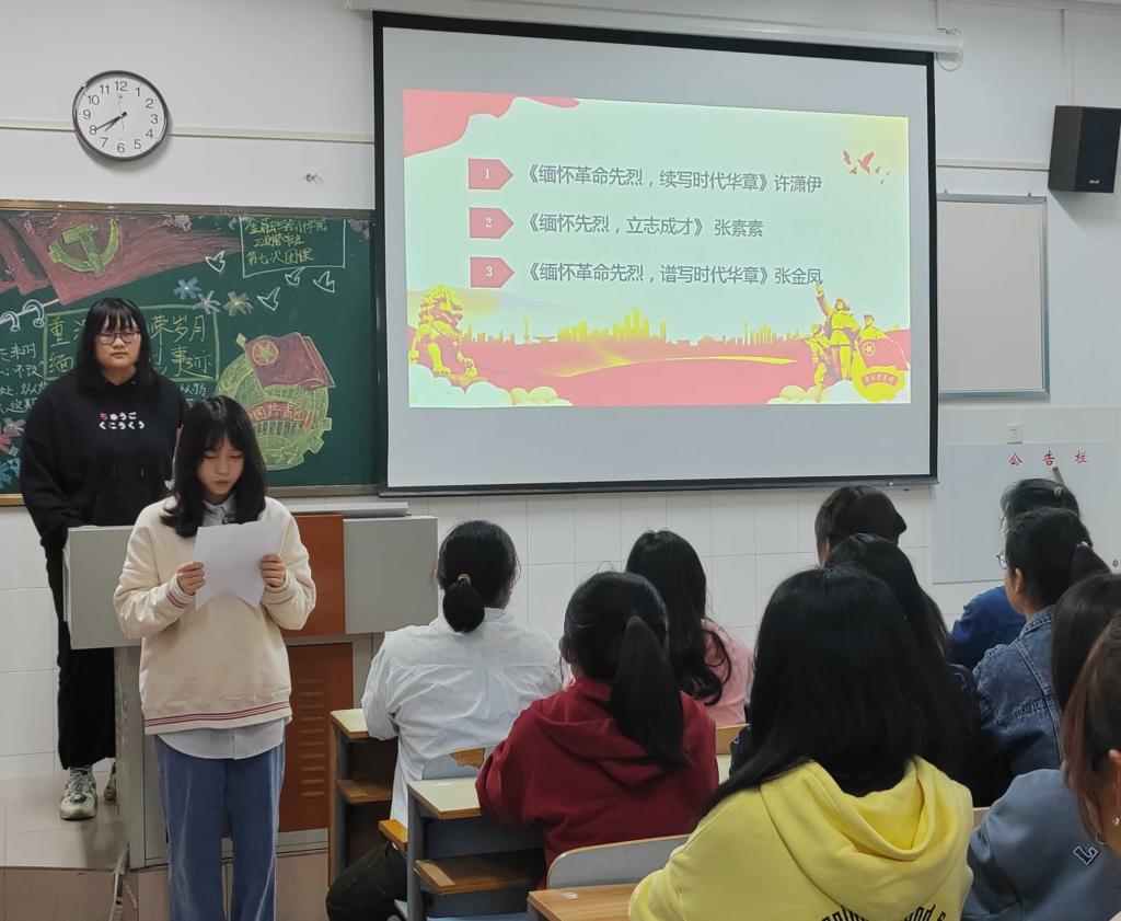 伴随着嘹亮的团歌声,各团支部组织的团课相继开展。在本次团课中,本次团课进行了革命先烈事迹学习,通过同学们激情的演讲让大家进一步感受往昔峥嵘岁月的红色血脉,以永不衰竭的激昂斗志,接起新时代的“接力棒”,走上新时代的“长征路”,做新时代的“答卷人”,同时团支部呼吁青年学子当不负前人之奋斗,接过时代火炬,以学习英雄的实际行动,告慰长眠地下的革命先烈。