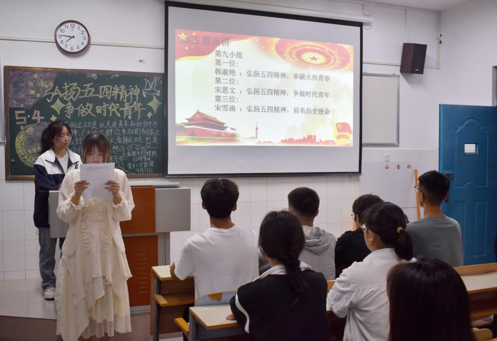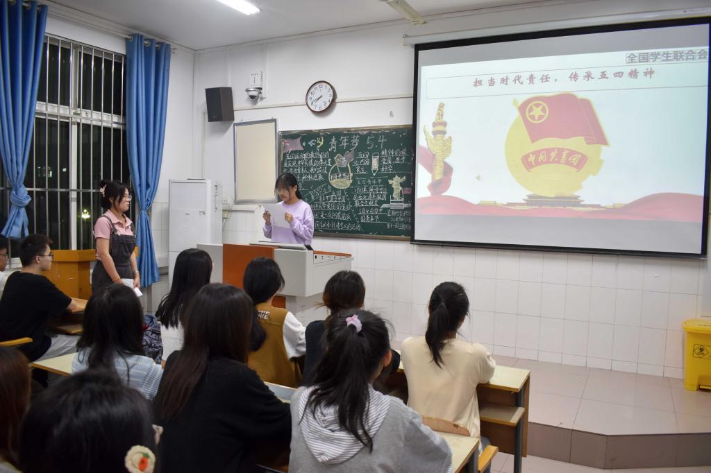 青年者,人生之春,人生之华也。在五四青年节来临之际为弘扬“爱国,进步,民主,科学”五四精神,学习百年青年运动史,增强团队的凝聚力和向心力。世界杯体育官方网站于4月27日晚开展“弘扬五四精神 争做时代青年”为主题的团课活动。