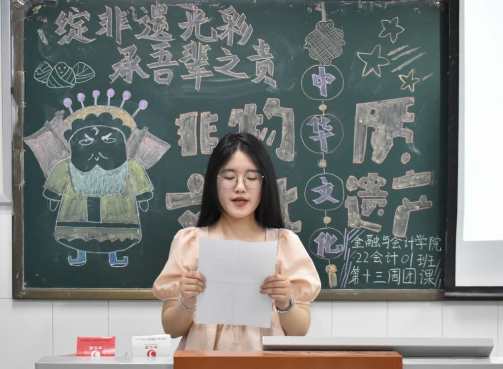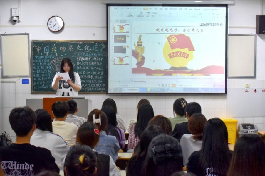 岁月失语,为石能言;薪火相传,方能永存。多姿多彩的非物质文化遗产见证了绵延不息的文化传承,是我们宝贵的精神财富。为了向同学们展示非遗文化的魅力,激发同学们对非遗文化的兴趣,深入挖掘非遗文化的内涵,世界杯体育官方网站于5月11日晚开展“绽非遗光彩,承吾辈之责”为主题的团课活动。