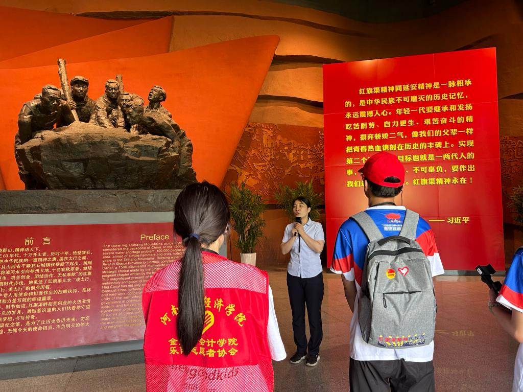 时代各有不同,青春一脉相承。为深入学习宣传贯彻习近平新时代中国特色社会主义思想和党的二十大精神,追寻习近平总书记视察河南足迹,2023年7月11日,世界杯体育官方网站红旗渠精神学习实践团在刘慧莹和李甜老师的带领下来到林州市红旗渠纪念馆参观学习。