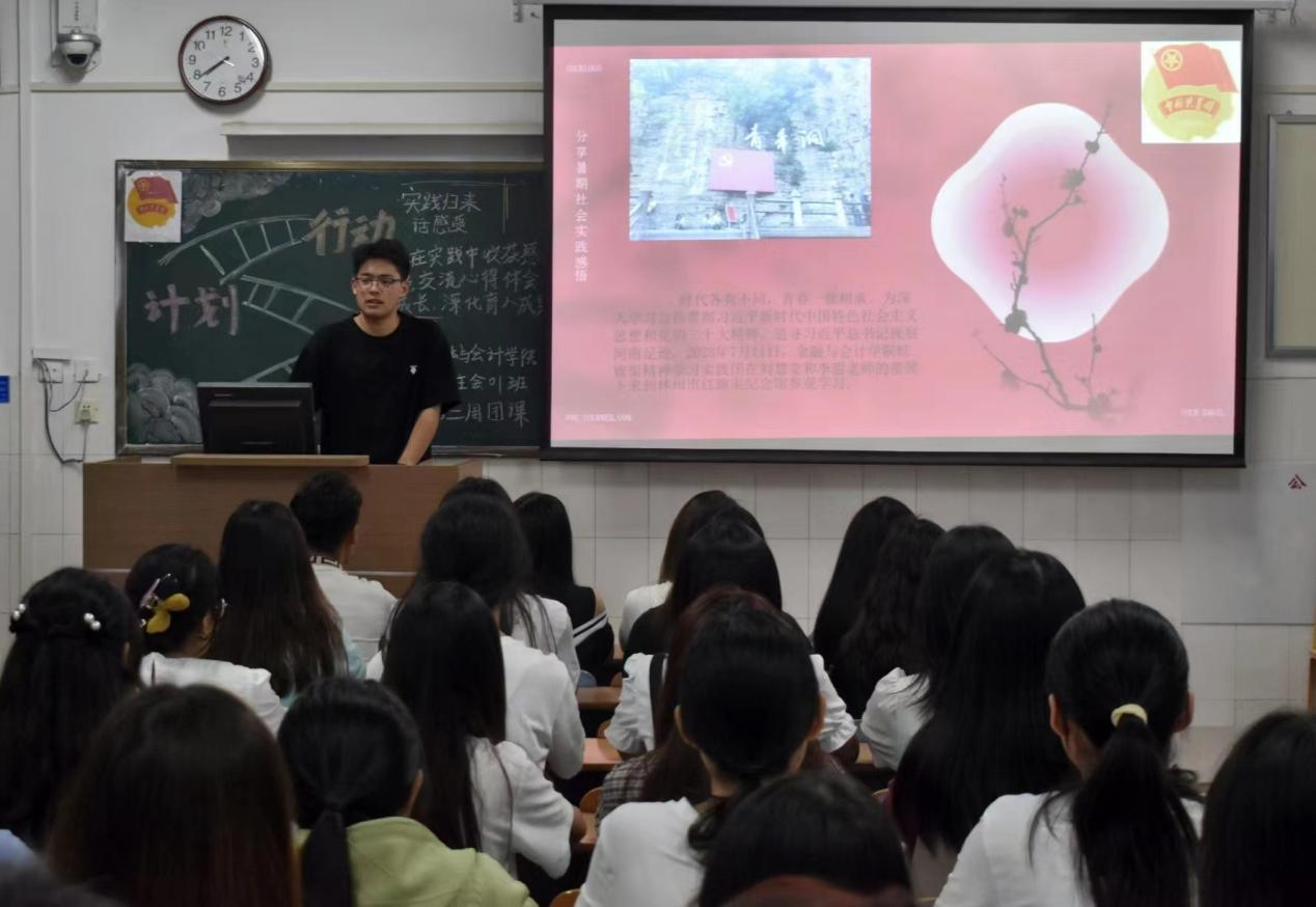 伴随着嘹亮的团歌声,各团支部组织的团课相继开展。在本次团课中,各支部首先组织青年大学生分享在实践过程的收获感悟,交流心得体会,总结学习成长,深化实践育人成果。之后开展了暑期社会实践优秀团队和个人的推选工作,发挥了示范引领作用,引导学生在投身实践中了解国情、关注民生、奉献社会。
