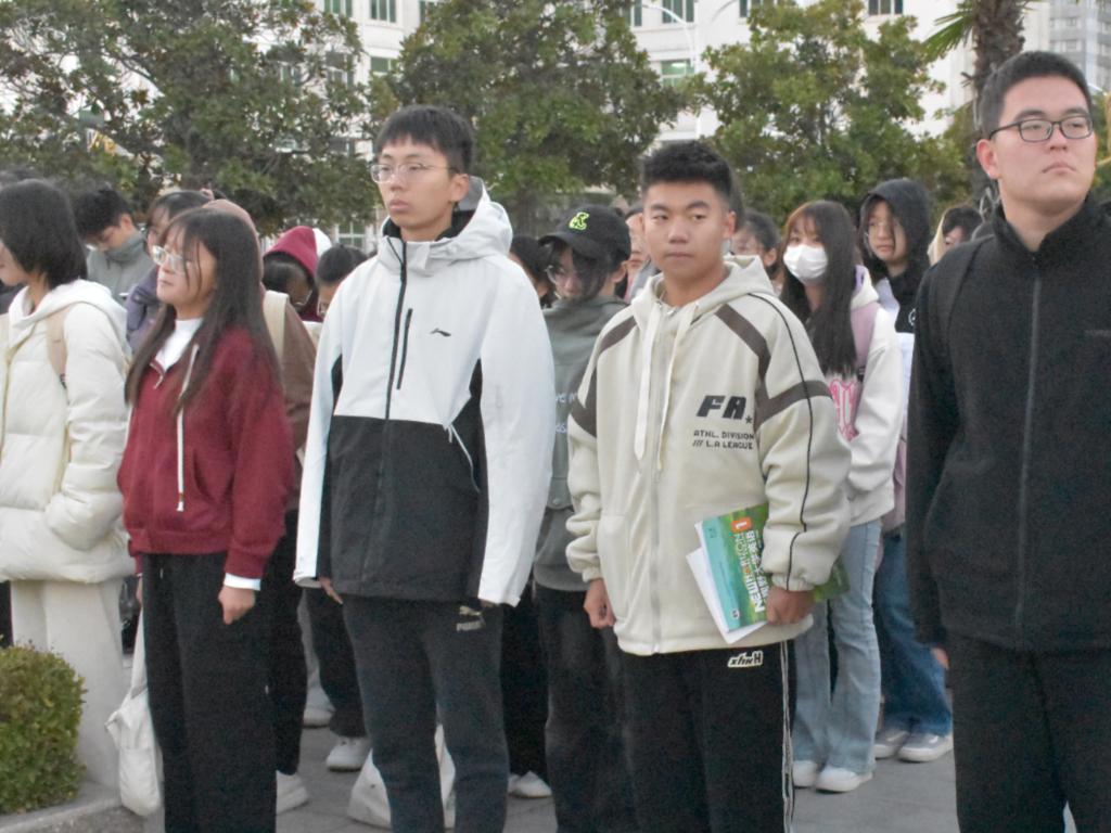 为进一步深化红色基因,高举思想旗帜,坚定理想信念,世界杯体育官方网站于11月6日清晨在英才校区综合实验楼前举行升旗仪式。世界杯2023级学生代表以及辅导员老师参加本次升旗仪式。