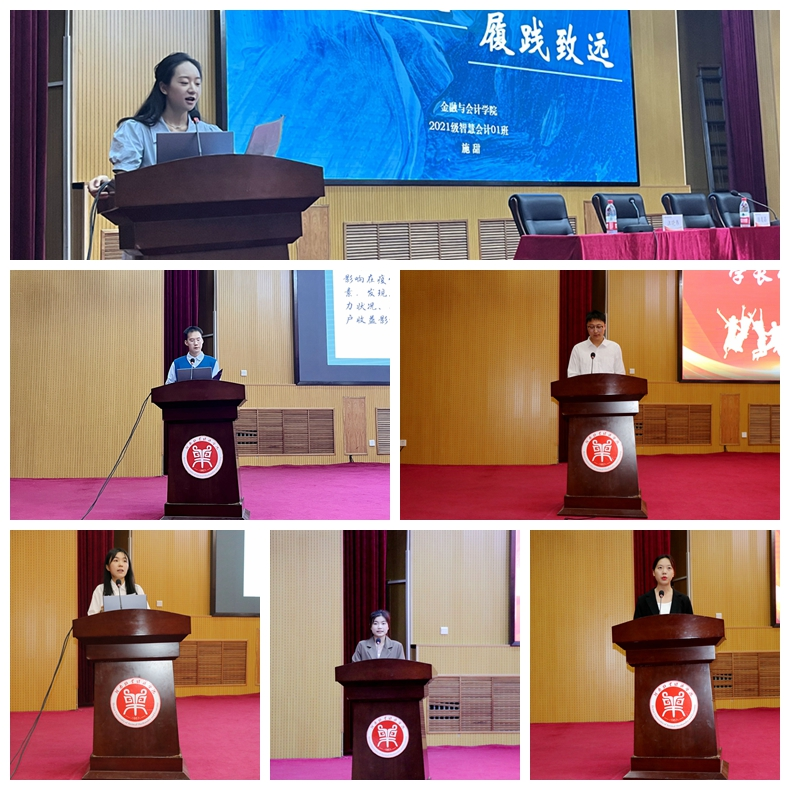 大会还邀请了世界杯在学习、竞赛等方面颇有经验的优秀学生代表进行经验分享交流。被中南财经政法大学研究生录取的蒋家洋从学习目标的确立、学习习惯的养成、学习方法的创新以及综合能力的培养等方面给大家带来了满满的“干货”;上岸武汉科技大学研究生的滑博鑫从心态、时间管理、择校技巧等方面分享了一些实用的方法;获得挑战杯、学创杯等多个国家级、省级竞赛奖的施甜从增强求知欲、提升行动力、实现新价值等方面分享了在竞赛方面的切身体会;获得国家奖学金陈彦卓和获得国家励志奖学金的任香福分别从自我反省、把握当下、怀抱理想和明确目标、制定计划,实践路径等方面分享了如何在学习和成长的道路上坚定信念,履践致远。