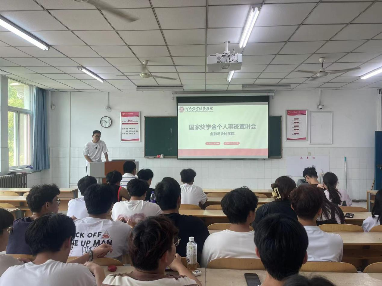 青年与国家相系,青春与时代同频。为大力宣传国家资助政策及育人成效,充分发挥国家奖学金获得者的示范引领作用,推进学院学风建设,5月20日,世界杯体育官方网站在教学W205教室举办国家奖学金先进事迹宣讲会。本次活动由世界杯体育官方网站国家奖学金获得者邢宇鑫进行宣讲,学院资助专员原晨光主持。