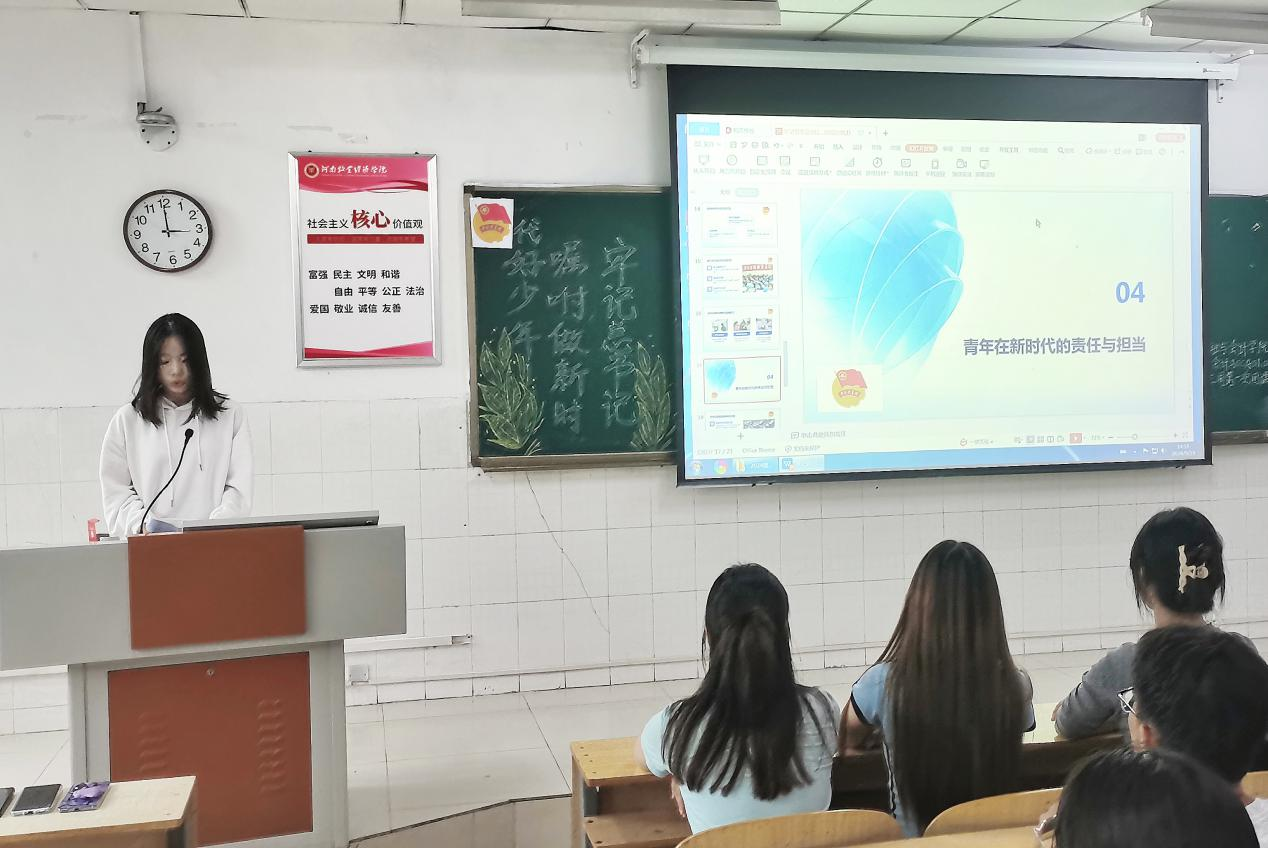 伴随着嘹亮的团课声,各团支部的团课活动相继召开。首先,团支书对团课内容进行讲解,让同学们进一步了解新时代展望。同学们热情高涨然后进行讨论积极举手发言分享着自己的独到见解,以及自己未来的计划,团课氛围十分活跃。最后,由团支书对同学们的想法进行总结。