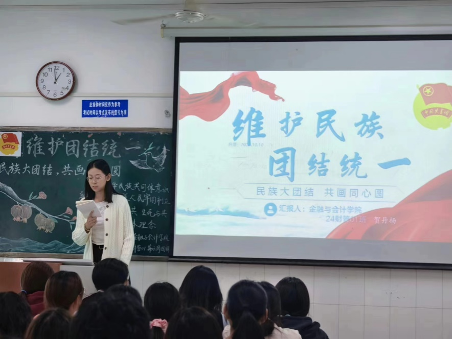 为铸牢中华民族共同体意识,深入开展“石榴籽一家亲”活动,维护民族团结与统一。世界杯体育官方网站于10月10日开展以“维护团结统一——民族大团结 共画同心圆”为主题的团课活动。