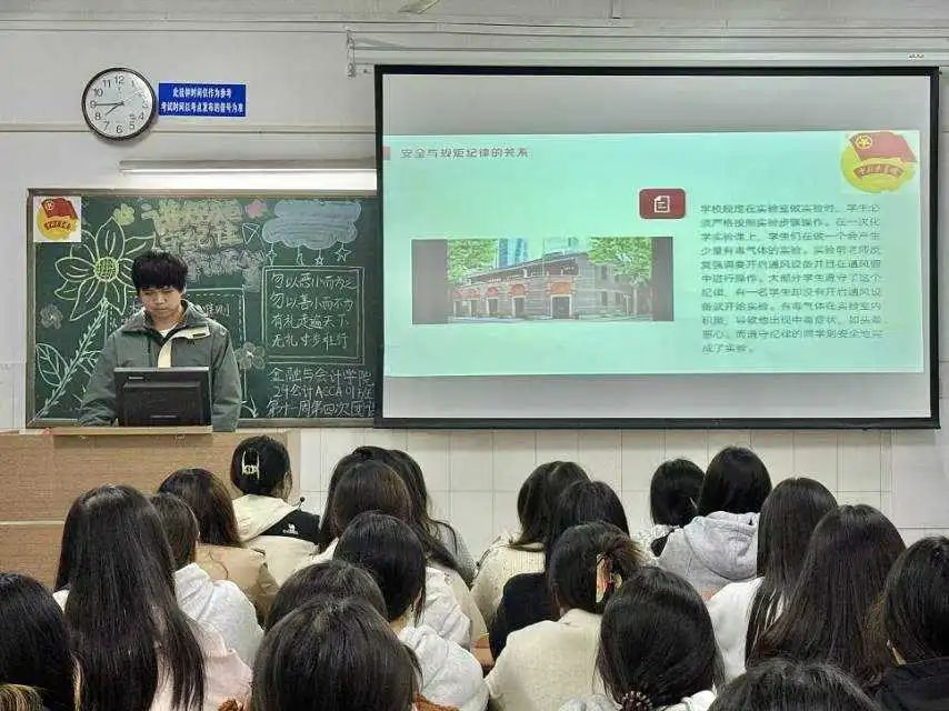 通过本次团课,同学们对如何正确和有效地保障个人安全产生了更加深刻的认识和理解,从而引导广大团员青年树立和践行规矩意识,培养形成自觉遵守校规校纪的良好习惯,在思想引领上促使新时代青年树立正确的纪律观。