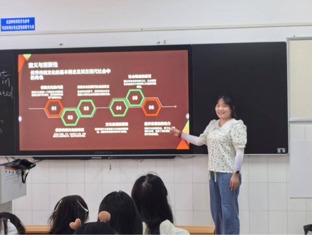 活动中,同学们利用课间时间以图文结合的方式,围绕中华传统文化中的经典诗词、历史故事、传统技艺等内容展开分享。有同学以《诗经》中的经典篇目为切入点,用生动的语言讲述古代先民的生活与情感,解读诗歌中蕴含的文化内涵;另有同学聚焦古代商帮,讲述了古代商帮的经营之道与诚信精神,将传统文化中的商业智慧与现代金融和会计知识相联系,引发同学们的深入思考。