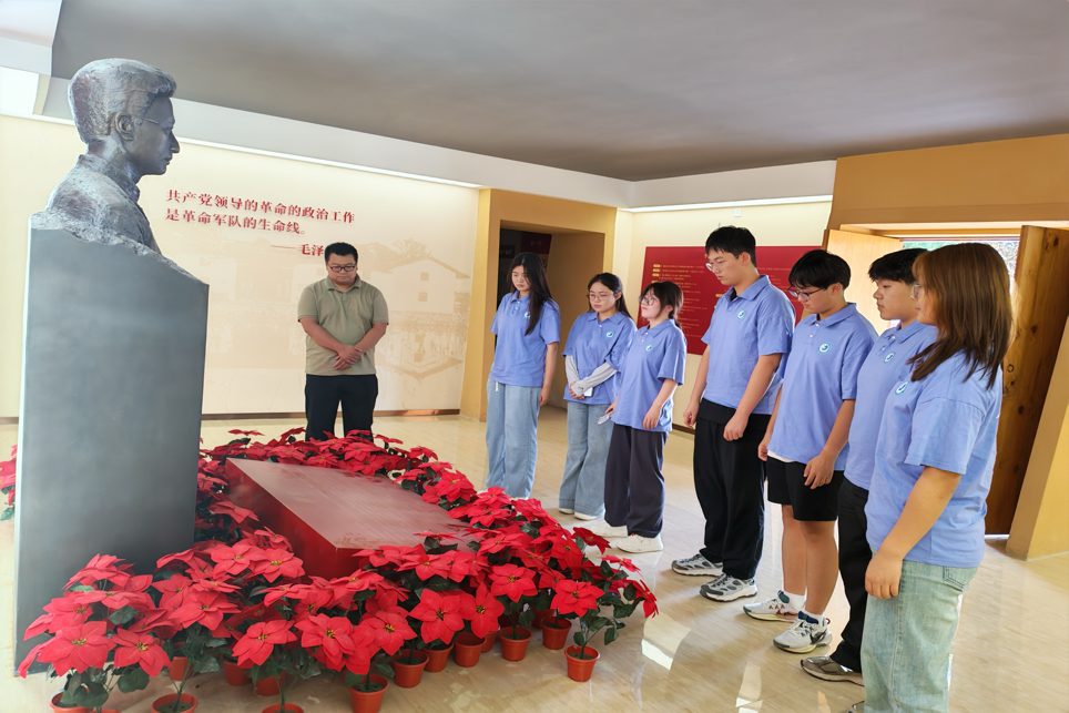 活动现场,实践团队成员有序参观馆内陈列。在“李翔梧、刘志敏年谱”展板前,大家驻足凝视,从一行行文字中,探寻革命先辈在底张乡这片土地投身革命、为信仰奋斗的峥嵘岁月,感受红色基因在乡野间的赓续传承;在“多才多艺学生领袖”展区,大量的历史照片、实物与文字资料交织,生动展现先辈青春担当,也映照出底张乡孕育红色力量的人文土壤。面对革命先辈雕像,全体成员庄严伫立、默哀致敬,深切缅怀先烈功绩,传承红色信仰,体悟底张乡红色文化的厚重分量。