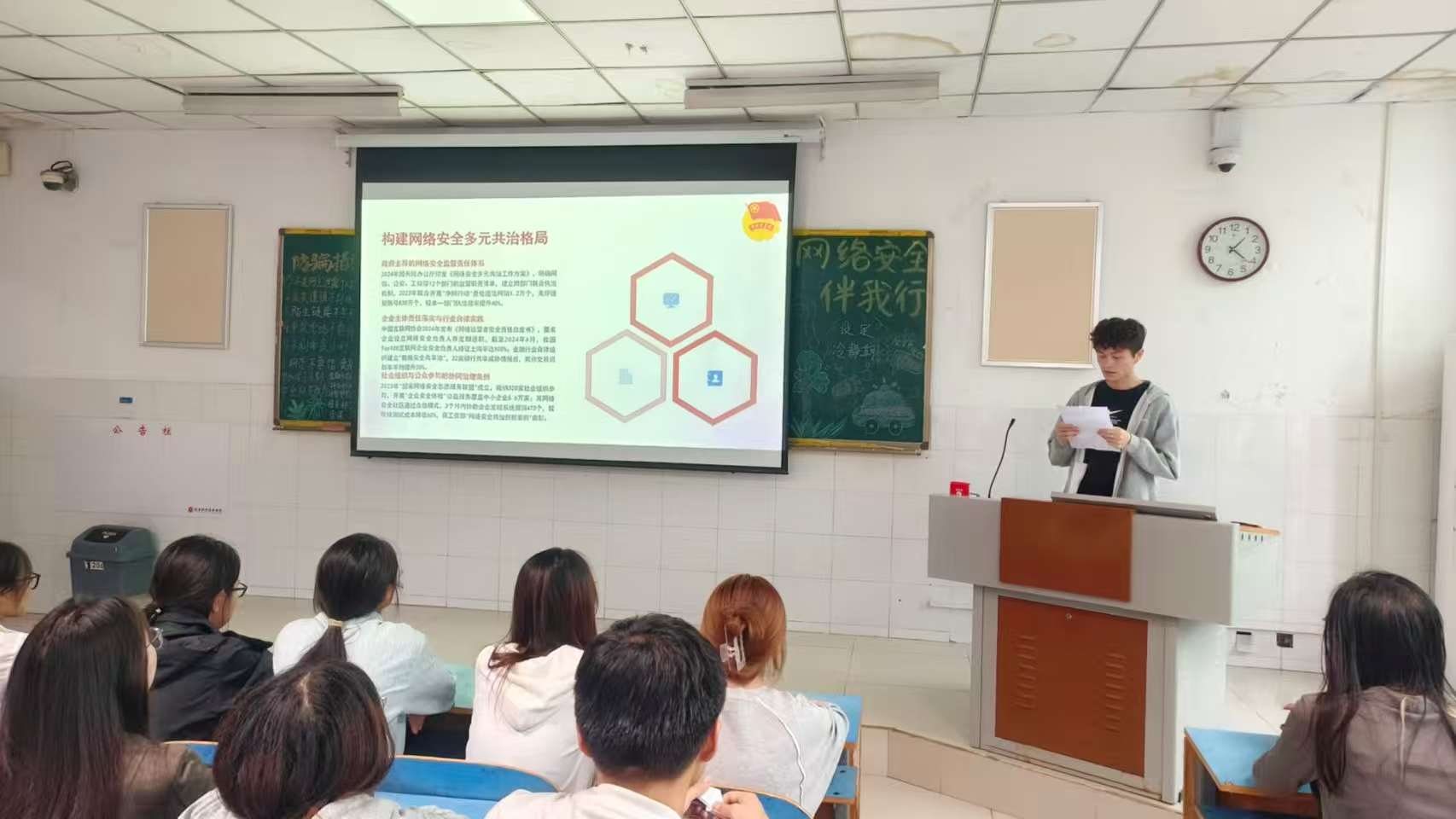 在嘹亮团歌声中,各班团课活动有序展开。活动伊始,各班团支书播放网络安全宣传短片,引发同学们对网络安全问题的关注。接着,团支书带领团员青年深入学习习近平总书记关于网络强国的重要思想,认真落实“四个坚持”重要指示精神,并组织学习《中华人民共和国网络安全法》《中华人民共和国数据安全法》《中华人民共和国个人信息保护法》等法律法规及政策文件。过程中,各班还进行网络安全知识科普,让同学们深入了解网络安全法。
