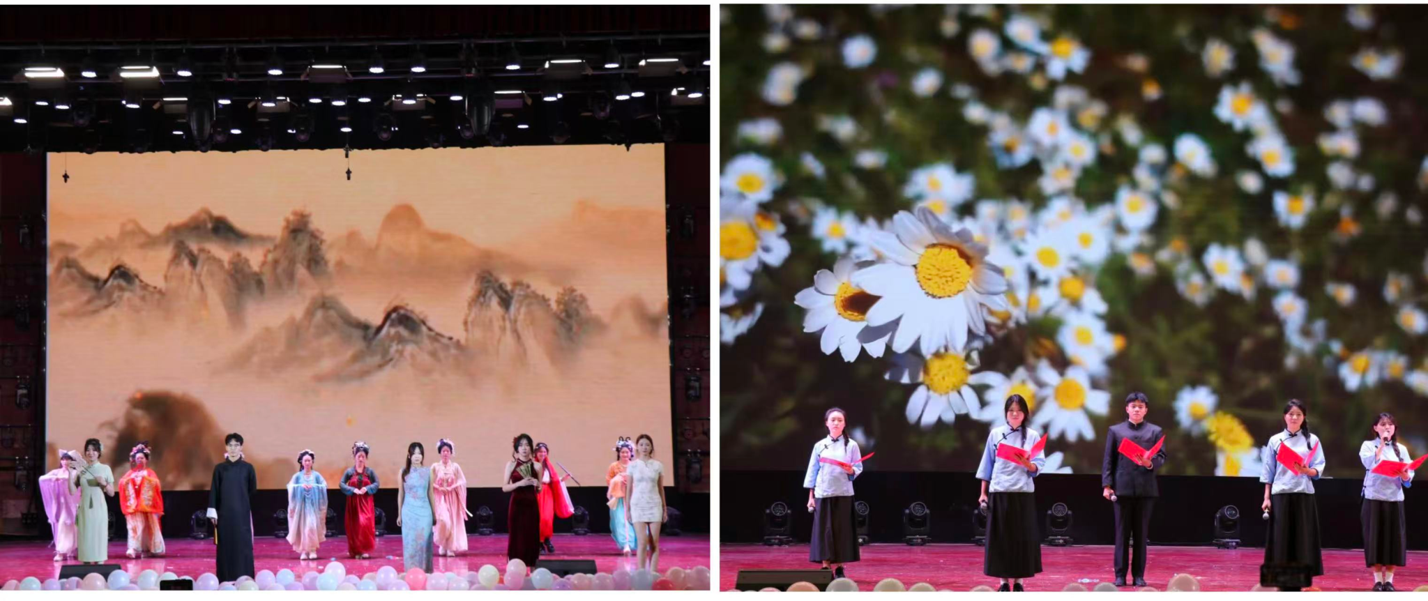 《Drunk Groove》踏潮而来,步履铿锵燃全场,衣袂翩跹绘雅章;《华夏衣冠》携韵登场,潮服展个性风采,华裳显传统韵味;《百年交响》缓缓启幕,字句铿锵承使命,语调悠扬寄期许,歌颂百年峥嵘岁月,抒展万丈青春豪情;声音响彻礼堂撼动人心,真情暖融字句感动全场。