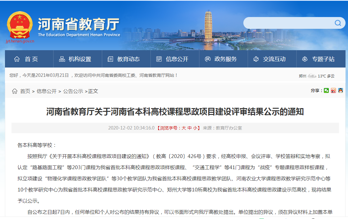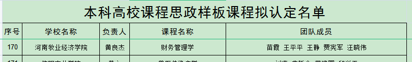 近期,河南省教育厅公布了河南省本科高校课程思政项目建设评审结果公示名单,世界杯体育官方网站院长黄良杰教授负责的《财务管理学》课程被列为本科高校课程思政样板课程。