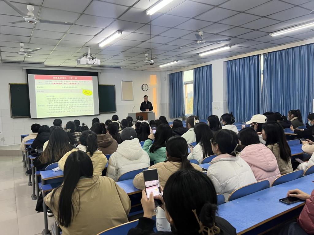 首先,原老师向大家介绍了关系到大家未来发展的重要资源——就业服务平台。为了更好地为同学们提供求职信息和服务,学校积极推动建设了全新的就业服务平台。这个平台将为同学们提供丰富的职位信息、实习机会以及各类招聘活动,助力大家更好地规划职业发展,提高就业竞争力。随后,原老师还向大家介绍一些关于国家地方基层项目的相关政策。这些项目是国家为了支持基层工作、培养优秀人才而设立的,对于我们大学生而言,是一个难得的发展机遇。通过参与这些项目,同学们将有机会深入了解社会实践,锻炼专业技能,积累实际经验,为将来的发展奠定坚实的基础。原老师鼓励大家积极了解并参与其中,争取为自己的未来打下更加坚实的基础。