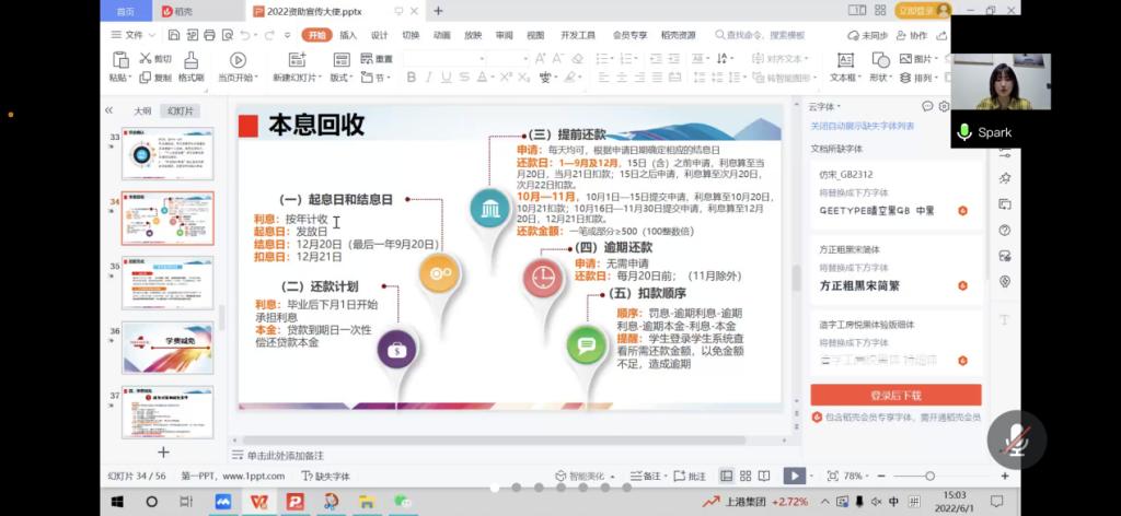 为落实贷款毕业生还款确认工作及进一步加强贷款毕业生的诚信教育,使其明确诚信还贷的必要性、可行性及违约造成的严重后果,保证贷款毕业生离校后还本付息的有关政策有效实施,6月1日下午,世界杯于腾讯会议平台召开2022届毕业确认暨诚信教育会议。会议由学院宣讲员崔佳佳同学主持,2022届贷款毕业学生70余人参加了本次会议。