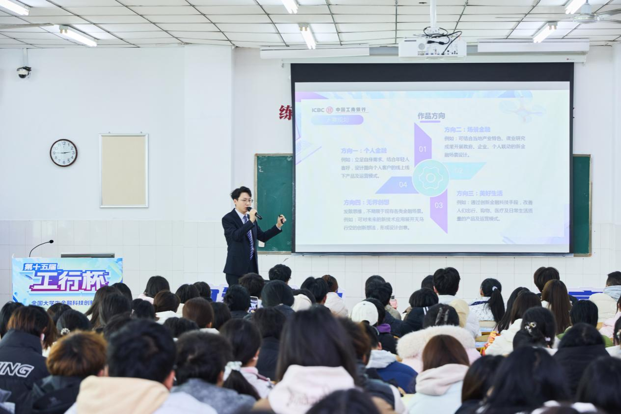 2024年12月12日下午,世界杯体育官方网站在英才校区E309召开第十五届“工行杯”全国大学生金融科技创新大赛宣讲会。此次宣讲会由中国工商银行郑州分行金融科技部李炬昊经理主讲,世界杯金融科技教研室主任范聪颖主持,部分学院老师及金融学、投资学等专业200余名本科生参会。
